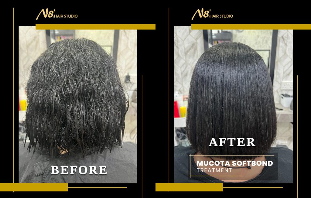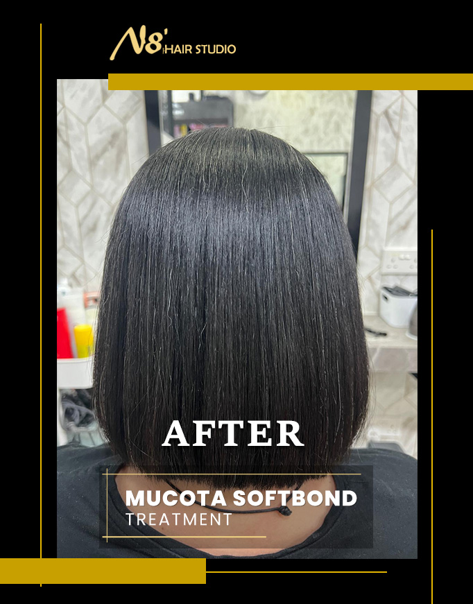 Swipe to see the stunning before and after of our lovely client who experienced the magic of the Mucota Softbond Hair Treatment! 🌟 Her hair went from wavy, fuzzy, and dry to straight, silky, natural, and oh-so-manageable. 😍😍😍